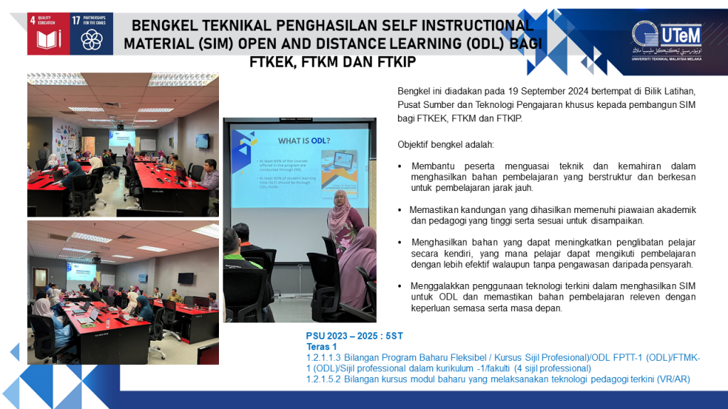 BENGKEL TEKNIKAL PENGHASILAN SELF INSTRUCTIONAL MATERIAL (SIM) OPEN AND DISTANCE LEARNING (ODL) BAGI FTKEK, FTKM DAN FTKIP
